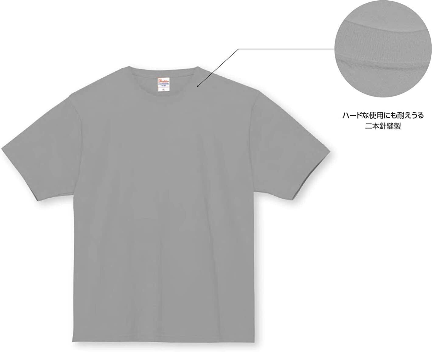7.4オンスの厚地でしっかりとした生地のTシャツです。襟元は二本針縫製でくたびれにくくなっています。