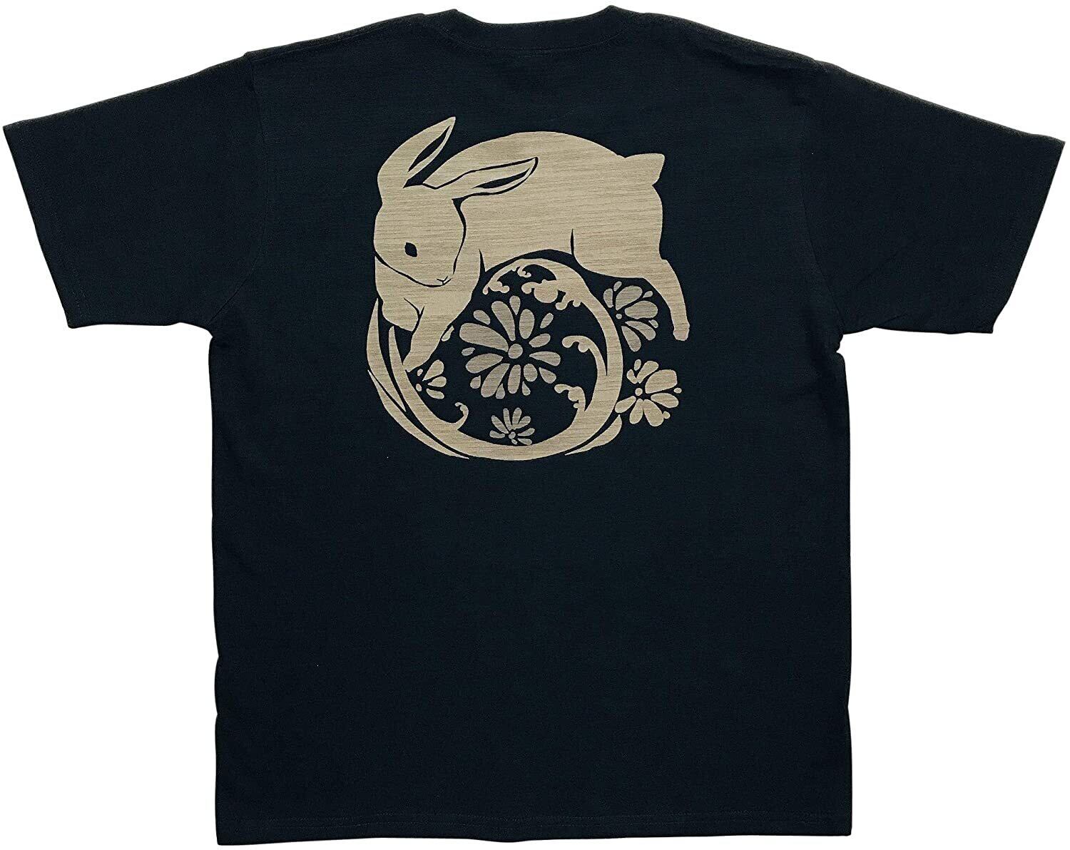 [江戸てん]Tシャツ 6.8オンス 和柄 味のあるスラブ生地に抜染しました メンズ うさぎと雛菊 黒
